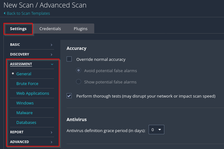 - Assessment tab: Enable “Perform thorough tests” (may disrupt your network or impact scan speed)